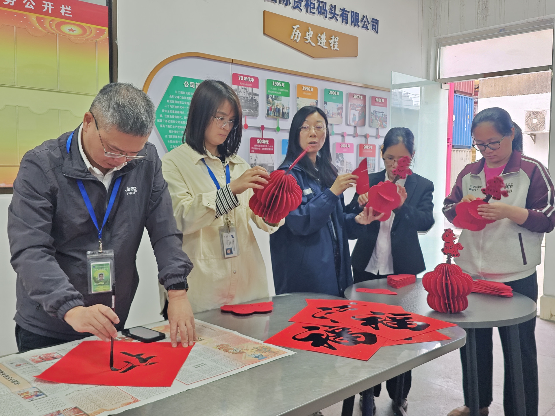 2026/2/14 15:04:35新春佳节来临之际,江门国柜公司在繁忙有序的生产运营中,精心组织开展了系列迎春活动,将码头一线的奋斗场景与喜庆祥和的节日氛围深度融合,多角度展现企业文化,凝聚团队力量,共同迎接农历新年。 -